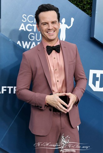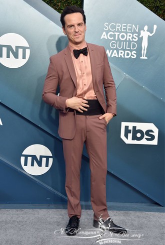 Священник из комедийного сериала «Дрянь», более известный широкой публике как Эндрю Скотт, тоже покорил немало сердец на дорожке, выбрав необычный цвет костюма – на этот раз он сочетал шоколадный костюм Azzaro Couture с бледно-розовой шелковой рубашкой.
