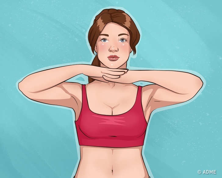 Французская телеведущая и автор бестселлера «Через 10 недель — моложе на 10 лет» Камилла Волер разработала комплекс упражнений для красивой груди, который пользуется популярностью во всем мире. Для тренировок не требуется специальный инвентарь, поэтому приступить можно сразу после прочтения статьи.Женская половина редакции AdMe.ru опробовала на себе все эти упражнения и предлагает вам включить их в свою ежедневную программу. 1. Упражнение «Ловец звезд» Данное упражнение играет роль разминки, оно исправляет осанку и укрепляет спину. Техника выполнения: Встаньте прямо, голову запрокиньте наверх. Поочередно вытягивайте то правую, то левую руку, зажимая их в кулак при каждом «захвате» звезды. 2. Упражнение «Слон» «Слон» помогает укрепить спину и шею, а также расслабить грудные мышцы. Техника выполнения: Расставьте ноги по ширине плеч и наклоните корпус вперед. Контролируйте положение спины — она должна быть параллельной полу. Расслабьте и опустите руки, после чего начинайте размахивать ими вправо-влево, двигаясь при этом назад. Голова должна повторять движение рук. 3. Упражнение «Кобра» «Кобра» воздействует на всю верхнюю часть туловища. Поначалу нетренированному человеку трудно выполнять это упражнение, но со временем будет гораздо легче. Техника выполнения: Лягте на живот. Положите руки на затылок. Оторвите грудь от пола и поднимите голову. Старайтесь выдвинуть локти вперед, поднимая при этом голову. Ноги необходимо держать вместе. 4. Упражнение «Теннисный мяч» Упражнение помогает добиться особо стойкого укрепления мышц груди. Его же называют одним из главных элементов комплекса. Техника выполнения: Встаньте прямо, слегка расставив ноги. Возьмите в руки теннисный мяч и поместите его в ладонях на уровне груди. Далее сжимайте и разжимайте его, направляя локти от себя и возвращая их в исходное положение. 5. Упражнение «Книга» Выполняется для подтягивания груди и укрепления мышц спины. Техника выполнения: Встаньте прямо и вытяните руки вперед ладонями вверх. Возьмите в руки по толстой книге / гантели. Разведите руки в стороны, затем сведите их вперед. 6. Упражнение «Ножницы» «Ножницы» помогают растянуть грудные мышцы и исправить осанку. Техника выполнения: Встаньте прямо, расслабьте плечи. Расставьте руки в стороны ладонями вниз. Вытяните их впереди себя и ритмично скрещивайте то правую руку над левой, то левую над правой. 7. Упражнение «Альбатрос» Данное упражнение выполняется для укрепления малых и больших грудных мышц. Техника выполнения: Встаньте прямо и слегка расставьте ноги. Вытяните руки параллельно полу, а ладони направьте вверх. Отведите руки назад, насколько это возможно, и вернитесь в исходное положение. 8. Упражнение «Подушка» Так же как и предыдущее упражнение, «Подушка» влияет на большие и малые грудные мышцы. Техника выполнения: Встаньте прямо, ноги поставьте вместе. Возьмите в руки подушку и ритмично сжимайте и разжимайте ее ладонями. 9. Упражнение «Колыбель» «Колыбель» помогает добиться укрепления опорных мышц груди. Техника выполнения: Встаньте прямо и скрестите руки перед грудью, поместив ладони на локти. Пытайтесь в таком положении поднять руки, создавая напряжение надавливанием ладонями на локти. 10. Упражнение «Подбородник» Упражнение укрепляет грудные мышцы и мышцы спины. Техника выполнения: Согните рук