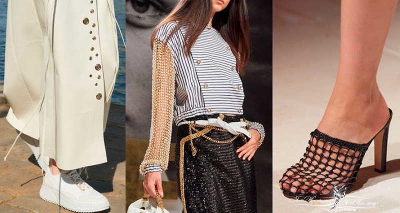 Самой спорной тенденцией можно считать обувь на танкетке, а самой ожидаемой – туфли со стразами, потому что люди устали от спортивных костюмов, и теперь блеск можно видеть повсюду.