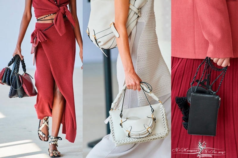 Заметили, как давно женщины не носили шейные платки на шее, так вот, в этом году их будут применять в создании образов по прямому назначению, не нужно больше выбирать: завязать платок на ногу или обмотать им сумку. Тема хендмейда особенно актуальна в сумках. Плетеные, вязаные, выкроенные из лоскутов ткани сумки в тренде.